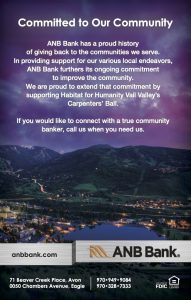 Giving back is a key point at ANB Bank and we’re so grateful for their support. At ANB Bank, we believe in giving back to our communities. We dedicate ourselves to giving to a variety of charitable causes, supporting community events, and connecting our volunteers with the community’s nonprofit organizations. We are proud to further that commitment by continuing our support of Habitat for Humanity Vail Valley!