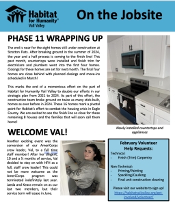 This marks the end of a momentous effort on the part of Habitat for Humanity Vail Valley to double our efforts in our strategic plan from 2021 to 2024. As part of this effort, the construction team broke ground on twice as many stick-built, homes as ever before in 2024. These 16 homes mark a pivotal point for Habitat’s effort to combat the housing crisis in Eagle County. We are excited to see the finish line so close for these remaining 8 houses and the families that will soon call them home! Read the update.