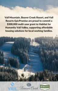 Vail Resorts has been a long-time supporter of Habitat Vail Valley and the Carpenters’ Ball. We’re grateful for the support at our home-town mountains.