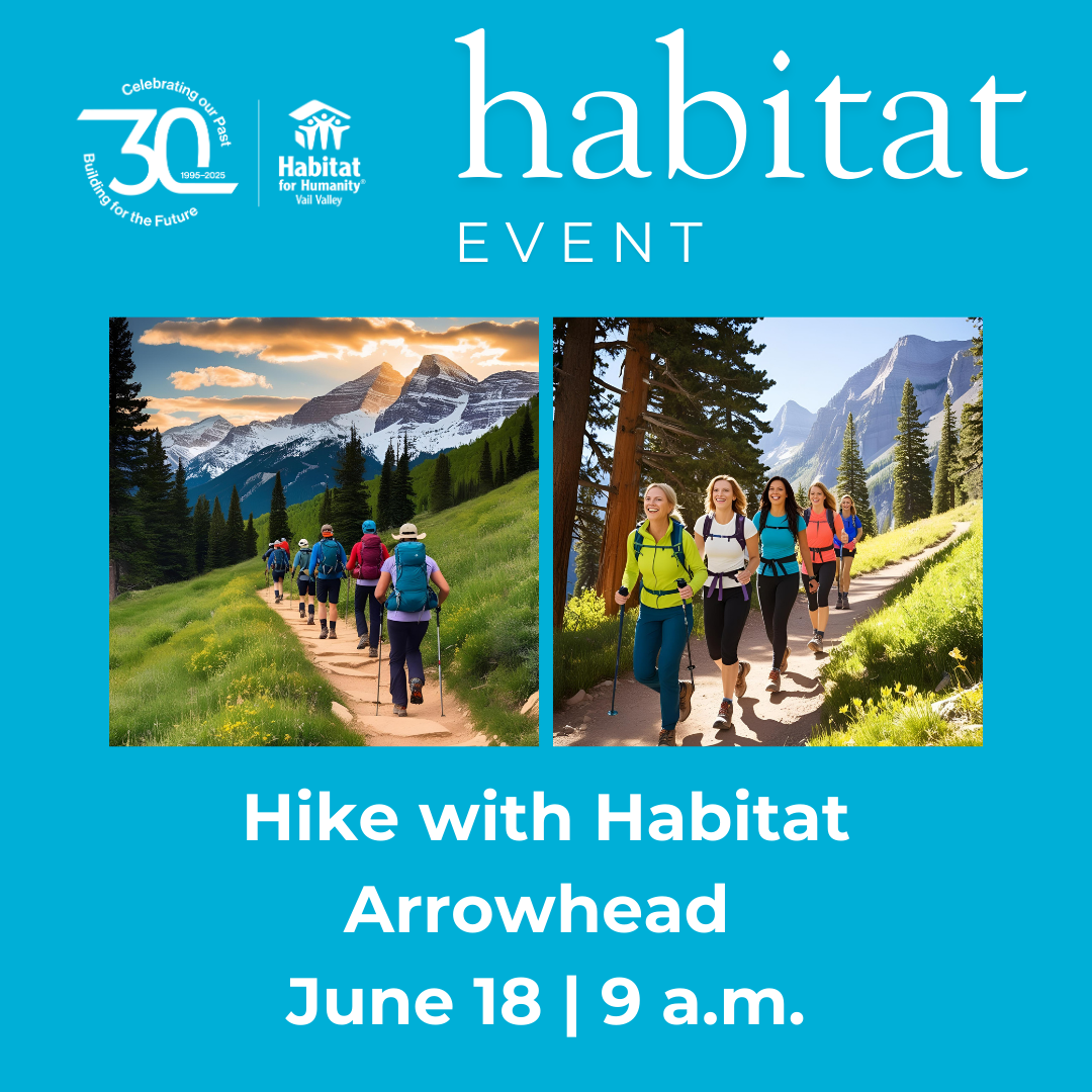 Get your steps in as you learn a little bit more about what Habitat Vail Valley does and hear about our plans as we celebrate 30 years.